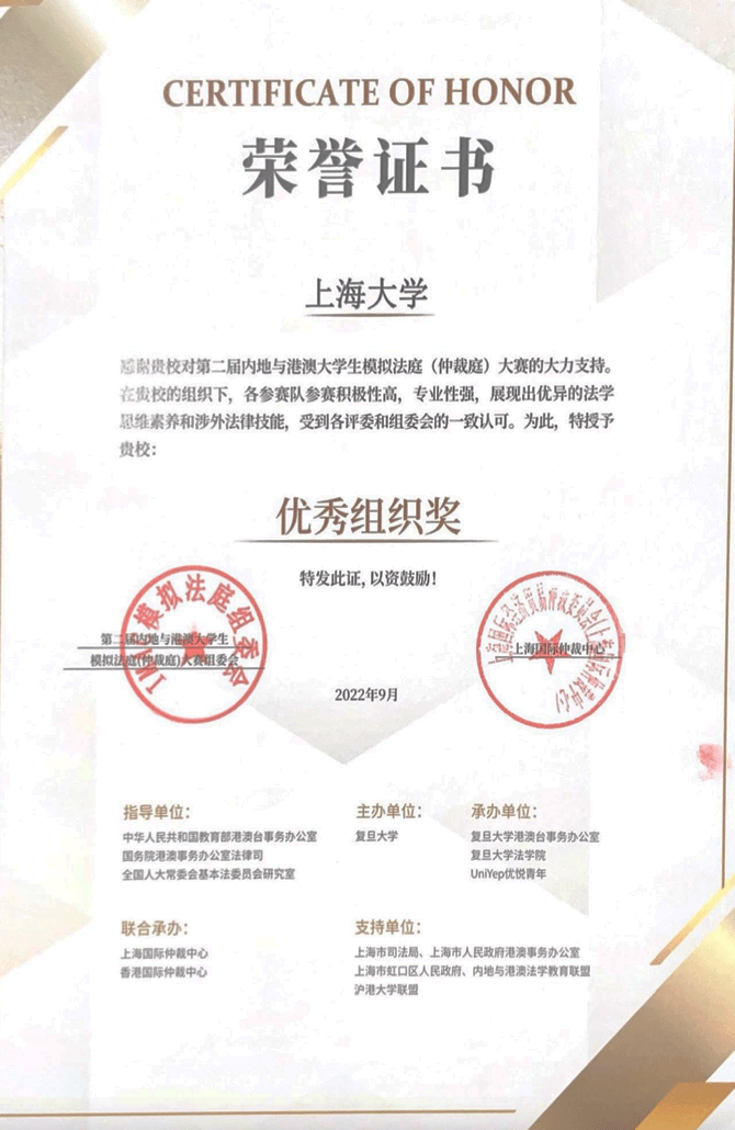 2022年8月28日下午历时六个月的第二届内地与港澳老员工模拟法庭(仲裁庭)大赛在上海国际争议解决中心圆满落幕。
