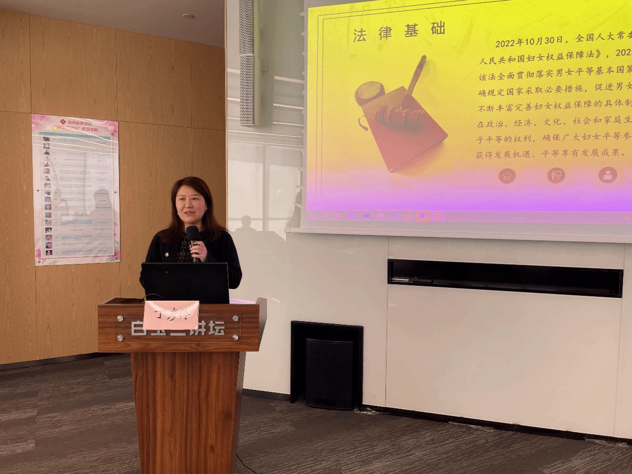 仪式后,304永利集团职业导师丁彦伶作了《法护妇女权益 共筑幸福家庭——上海市妇女权益保护条例解读》专题讲座。通过生动的案例讲解国家妇保法和上海妇保条例,进一步增强广大妇女儿童的法律观念和依法维权意识。
