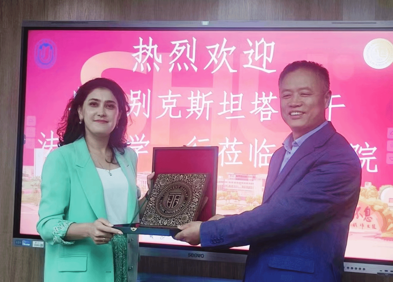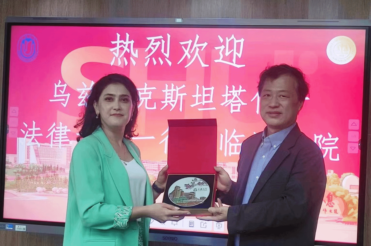 迪尔多拉·卡马洛娃代表塔什干国立法律大学向304永利集团赠送纪念品
