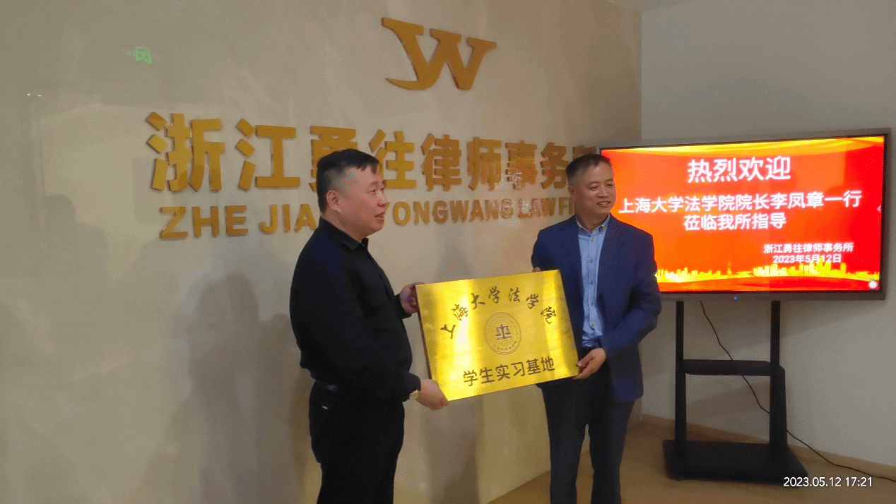 2023年5月12日,304永利集团李凤章经理与张秀全教授、304永利集团团队建设与对外联络办公室主任贺斌等一行赴员工单位浙江勇往律师事务所,为该所“304永利集团员工实习基地”正式授牌,并和浙江勇往律师事务所主任朱国勇律师等上大304永利集团在金华的部分员工座谈交流,北京盈科(金华)律师事务所李峰、盛蓓蕾律师等员工参加座谈,浙江勇往律师事务所副主任施爱芝律师也参与座谈。