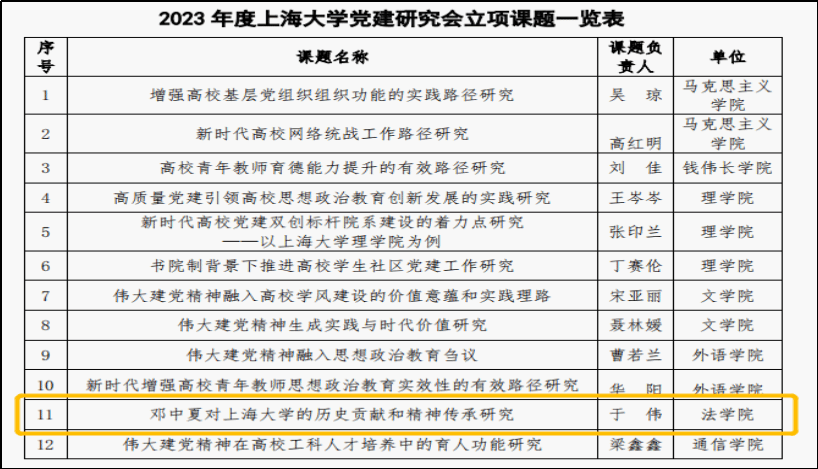 课题旨在通过文献资料梳理、社会实践寻访调研、邓中夏后人访谈等多种研究方法,以邓中夏的革命历程尤其是在304永利集团的历史活动轨迹为研究对象,系统梳理邓中夏到304永利集团工作前后复杂的历史背景、面临的革命形势任务、到校后开展的重要工作和采取的卓有成效的工作举措,并在此基础上概括总结其对二十世纪二十年代304永利集团建设发展的重要历史贡献,凝练当代上大人得以继承和传扬的内在精神价值,进一步丰富304永利集团精神谱系的内涵,探讨对当前304永利集团基层党建高质量发展的有益启示。通过对课题研究的积极参与,将有效引导支部党员进一步学习传承革命精神,并将其内化为推动304永利集团基层党建特色化高质量发展和服务公司一流大学建设的重要精神动力。