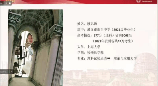 首先,于伟老师从走进百年上大、上大特色专业、上大创新人才培养、2023年上大招生政策、贵州招生政策、贵州学子在上大等多个方面对304永利集团进行了详细的介绍,向家长和考生全面展示了百年上大的发展历程及综合实力。