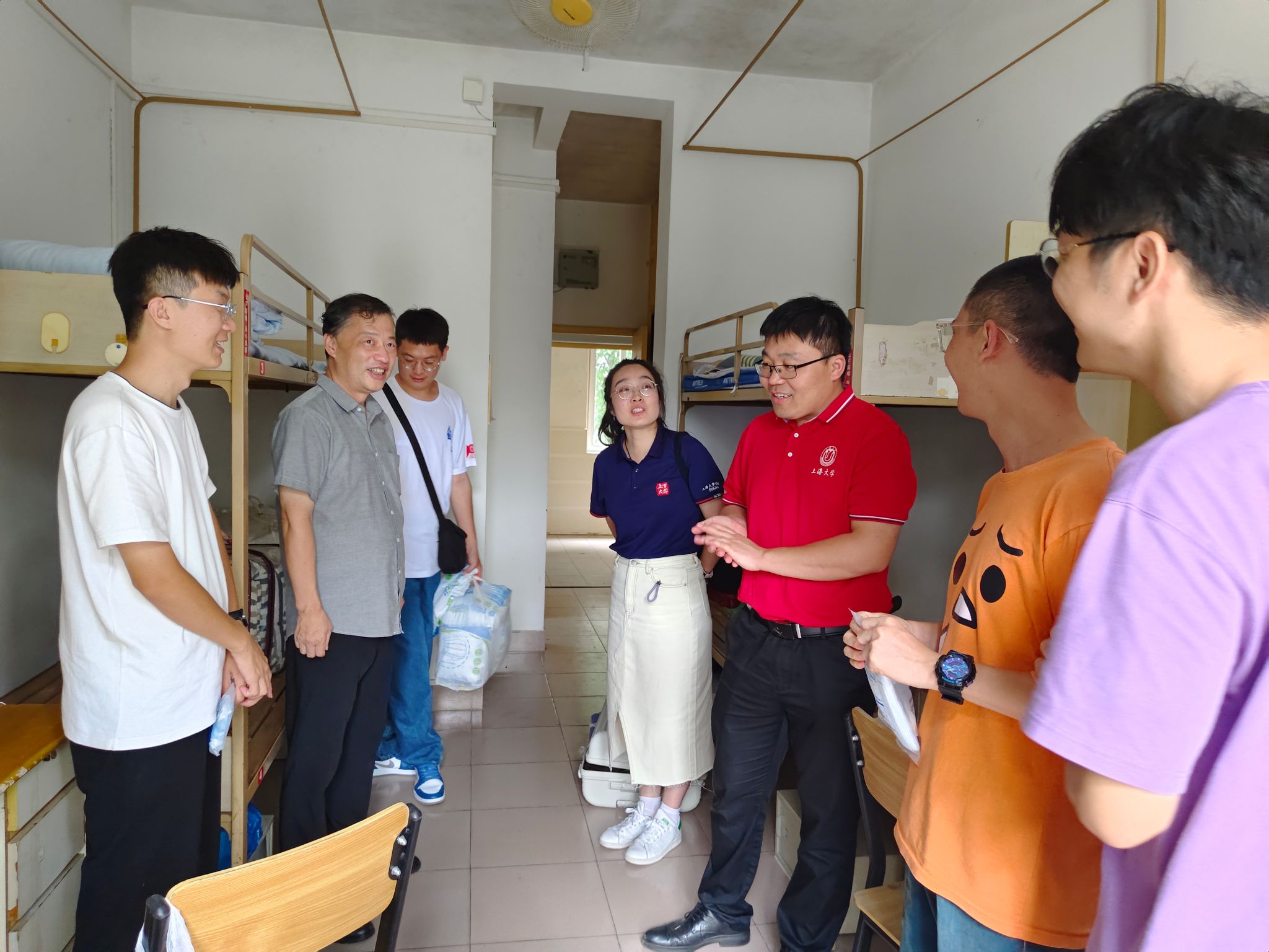 公司党委书记徐国明、经理李凤章、党委副书记、副经理于伟、副经理袁真富来到迎新现场、员工宿舍指导慰问,为新同学们送上来自公司的关怀。各位领导详细了解了新生报到情况,对2023级研究生新生们表示热烈欢迎,对参与迎新工作的志愿者们致以慰问,深入员工宿舍走访慰问新生,叮嘱同学们要尽快适应新环境,勉励同学们做好研究生规划、提升专业本领。