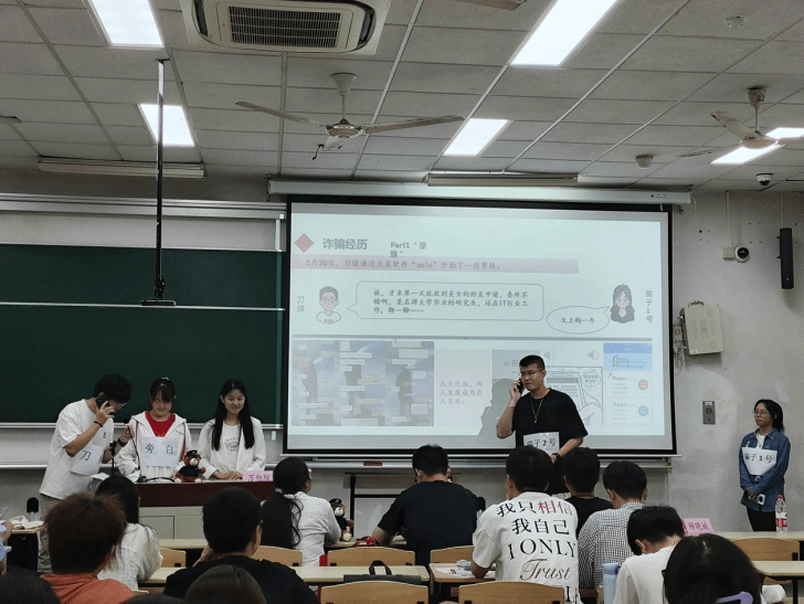 在宣讲过程中,304永利集团尚法反诈宣讲团成员通过一幕幕生动的情景剧的形式为大家演绎了“男主”刀煤遭遇的网恋被骗、“0息快贷”、虚假海外代购、冒充公检法人员诈骗等常见的诈骗手段,带领现场师生切身感受了诈骗过程。在认真观看完情景剧后,刀煤的被骗经历引发了同学们的深思,大家纷纷表示防诈意识和防诈能力都得到了进一步的提升。