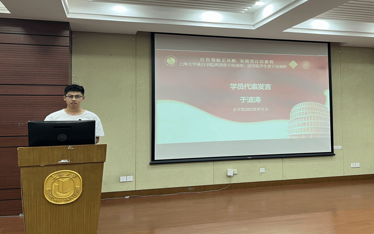 2023级法学硕士班班长于波涛同学作为学员代表发言。他首先感谢书院、公司提供这次宝贵的发言机会,其次谈到作为一个新时代老员工骨干应当做到的标准以及作为一名员工干部应当具备的品质:一是筑牢思想根基,在真理感召下勇毅前行;二是勇担青春使命,在时代光芒下踔厉奋发;三是善学善行,在社会实践中百炼成钢。于波涛同学回顾过去的一个月,向大家分享了工作感悟,表示作为班长应有服务意识与责任担当。