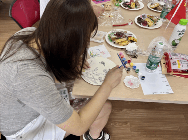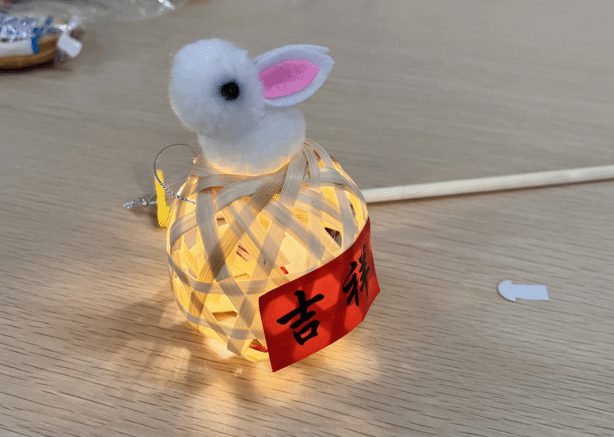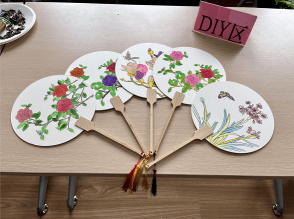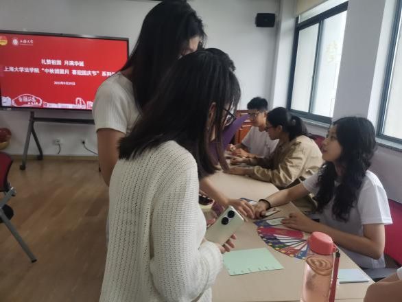 这个区域准备了中秋灯笼与团扇材料包,大家可以在该区域中挑选自己喜欢的灯笼或团扇样式,按照材料包中的步骤完成制作。赏灯是中秋的习俗之一,中秋节看花灯寓意着幸福团圆。而团扇也象征月亮,古人云“裁为合欢扇,团团似明月”,中秋佳节之际,一柄团扇寄托思念和团圆。同学们一个个都心灵手巧,精心制作,让我们来展示一下大家的成果!