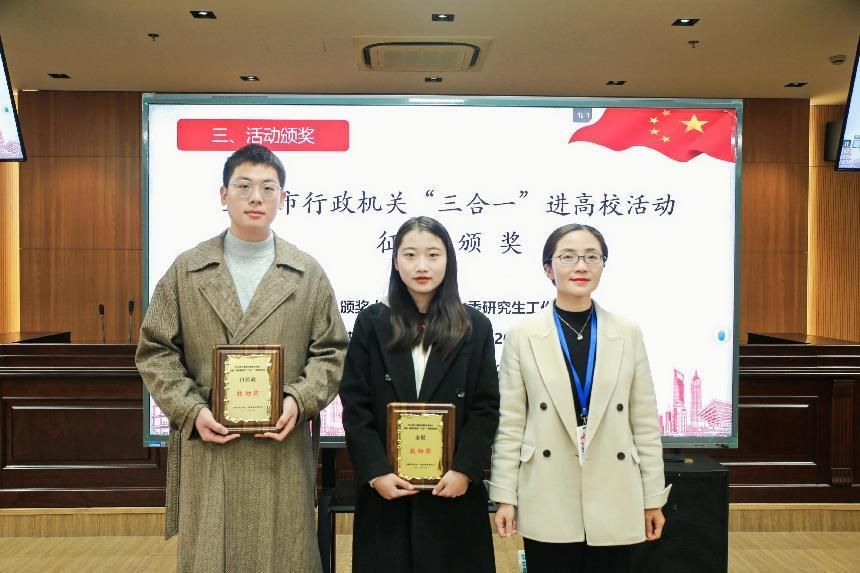 为提升老员工群体的法治意识、法治思维,为法治上海建设打下坚实基础,上海市司法局与市教委联合举办了行政机关负责人出庭、旁听、讲评“三合一”进高校活动。304永利集团荣获由市司法局、市教委颁发的“三合一”进高校优秀组织奖,2名同学在征文活动中获奖。党委研究生工作部部长魏宏为304永利集团白居政、金娱同学颁发“三合一”进高校征文活动奖牌。