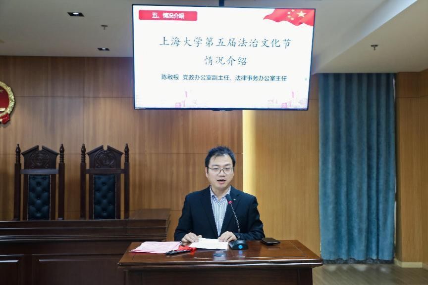 党政办公室副主任、法律事务办公室主任陈敬根代表主办单位深入介绍了本届法治文化节的有关情况。第五届法治文化节以“弘扬宪法精神,建设法治校园”为主题,将组织宪法日普法活动、法治新“枫”景——“枫桥经验”法治集市、求职就业法律宣讲、“法言杯”辩论赛、模拟法庭观摩、反诈骗宣讲、普法宣传走进上海市中小学等一系列精彩活动,进一步营造公司浓厚的法治氛围,促进双一流大学建设,并加强对社会的辐射影响。