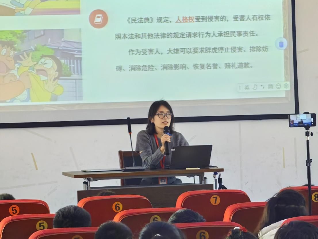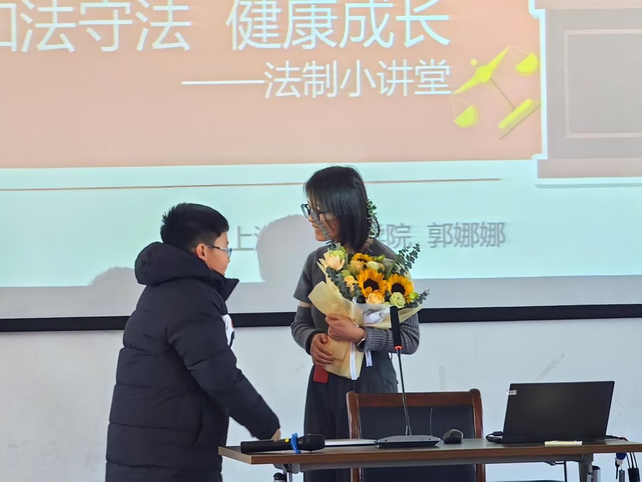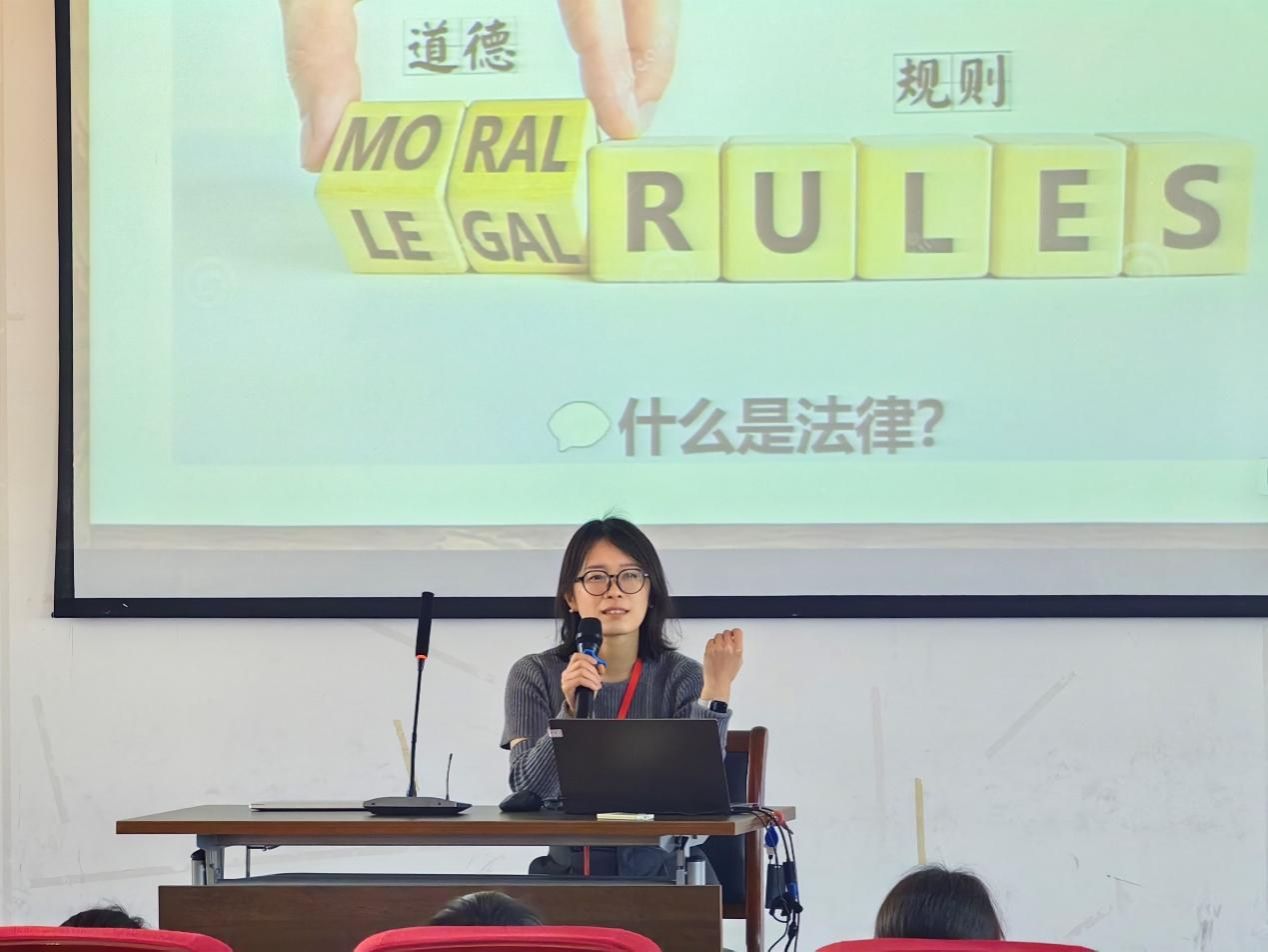 为深入贯彻习近平法治思想,坚持社会主义法治道路,大力弘扬法治精神,普及法律知识,进一步促进青少年学法、懂法、守法、用法,增加安全防范意识,提高自我保护能力,营造平安和谐校园环境。2023年12月25日下午,304永利集团青年教师郭娜娜前往上海民办华曜宝山实验公司开展以“知法守法 健康成长”为主题的法治小课堂。