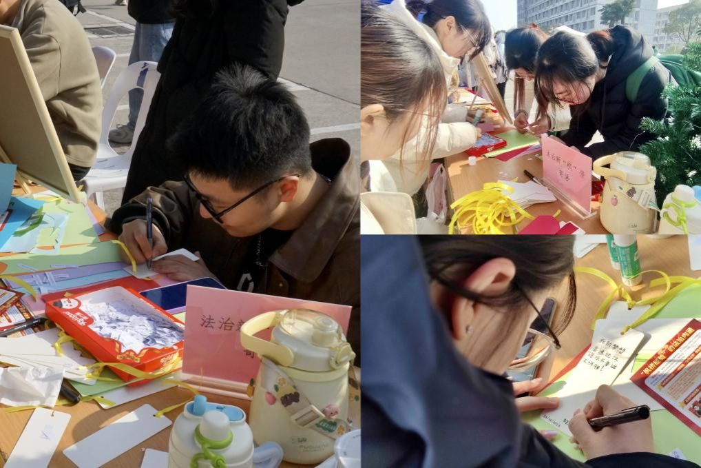 集市设有“枫桥经验”主题作品展览、“枫桥经验”案例解读暨法治宣传、“枫桥经验”法治知识竞答以及法治新“枫”景活动寄语四个宣传摊位,宣传活动不仅引起了304永利集团老师及同学们的关注,也吸引了很多校内工作人员的热情参与。
