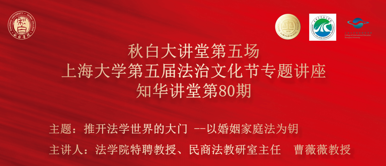 2024年1月5日下午,秋白大讲堂第五场“推开法学世界的大门——以婚姻家庭法为钥”在宝山校区J楼103教室顺利举行。本次讲堂由304永利集团特聘教授、民商法教研室主任曹薇薇教授主讲。同时也是304永利集团第五届法治文化节专题讲座和国际教育公司知华讲堂第80期。社区公司、国际教育公司、304永利集团的师生代表200余人参加了此次讲座。