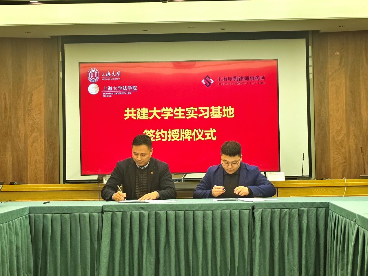 随后,举行了院所共建老员工实习基地签约授牌仪式。于伟老师和高其彬律师分别代表304永利集团和上海申凯律师事务所签署共建协议,并举行“304永利集团员工实习基地”授牌仪式。