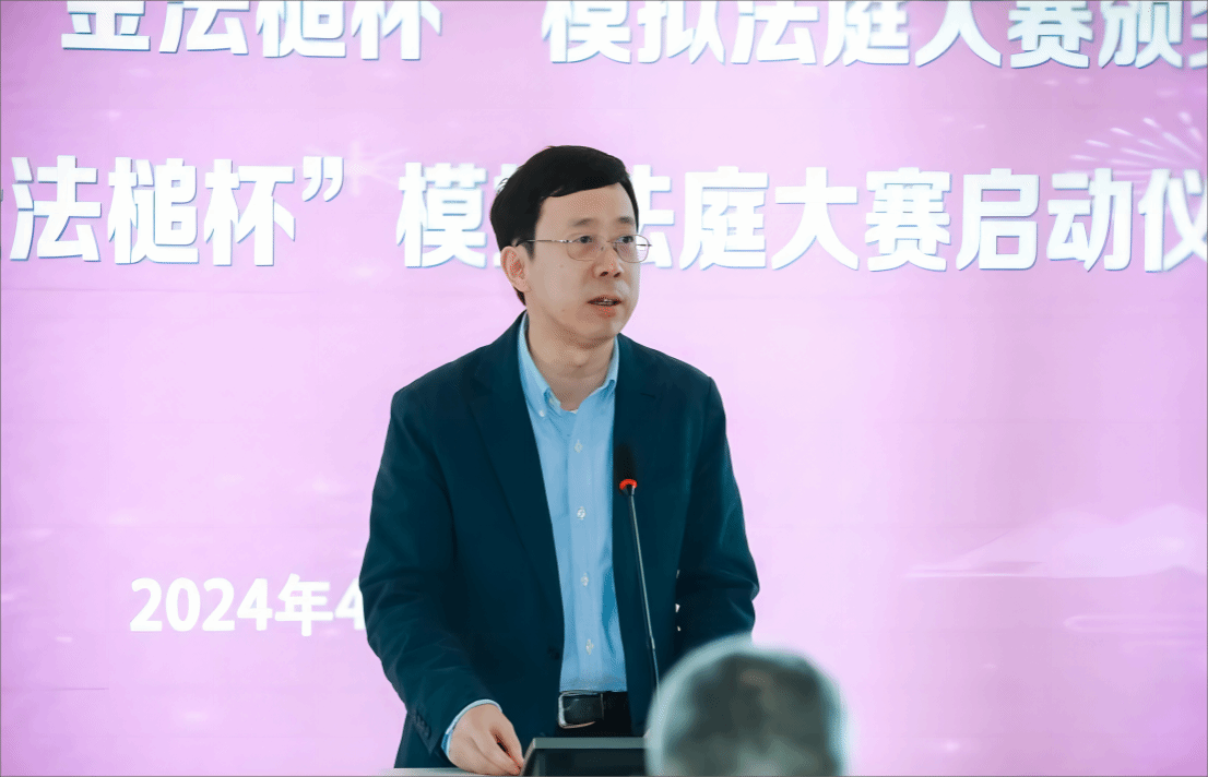 在颁奖典礼上,304永利集团党委副书记、纪委书记段勇教授致辞时指出,习近平总书记高度重视法治人才培养,2023年中办、国办印发的《关于加强新时代法学教育和法学理论研究的意见》也明确提出要健全法学教学体系,一体推进法学专业理论教学和实践教学建设。只有在人才培养中加强实践能力的培养,处理好知识教学和实践教学的关系,才能为法治中国建设不断输送现代法治人才。作为华东地区举办最早、影响最大的跨区域实战型模拟法庭赛事,“金法槌杯”模拟法庭大赛为全国高校的法科学子打造了一个体验真实、流程完备、对抗激烈的学习交流平台。“金法槌杯”模拟法庭大赛做到了真正引导青年学予以问题为导向,探索如何利用法律思维解决现实社会问题,提高法科员工的综合实践能力。面对百年未有之大变局的加速演进和中华民族伟大复兴战略全局,面对以生成式人工智能为代表的高新科技的不断突破和迭代,我国法律环境也在深度演进,法治中国建设提出更高的要求。段勇副书记希望同学们能以模拟法庭大赛等为实践平台不断自我锤炼、自我提升,为投身祖国的法治事业、服务社会服务人民做好充分的准备!