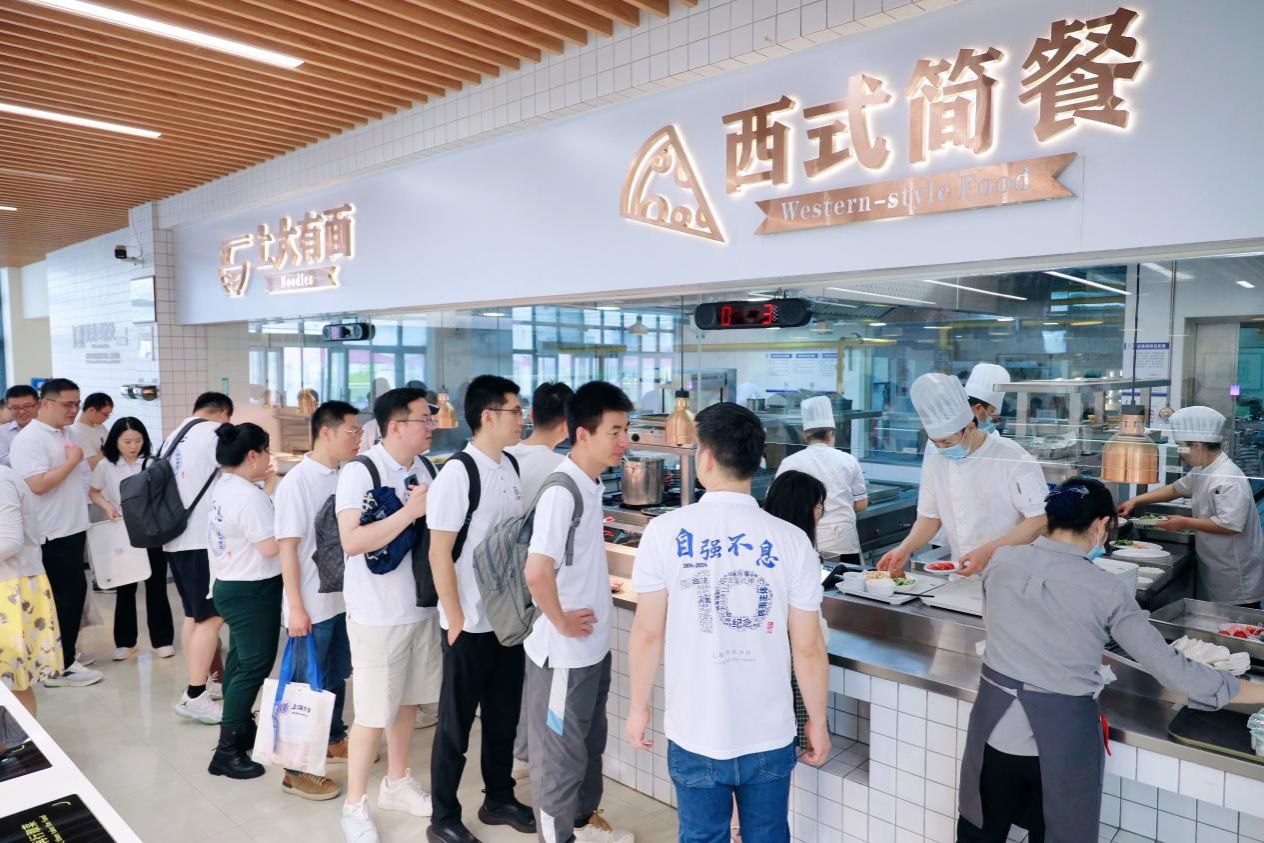 午餐时间,员工们统一在东区食堂三楼用餐,干净整洁的用餐环境,温馨的气氛,可口的饭菜,使得员工们不禁感叹母校基础建设和后勤工作的进步,大家用餐过后重走上大校园的一条条老路和新路,不禁回忆起求学时自己在这些道路上的一步步,才铸就了今天更好的自己。