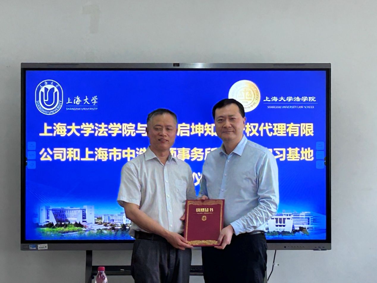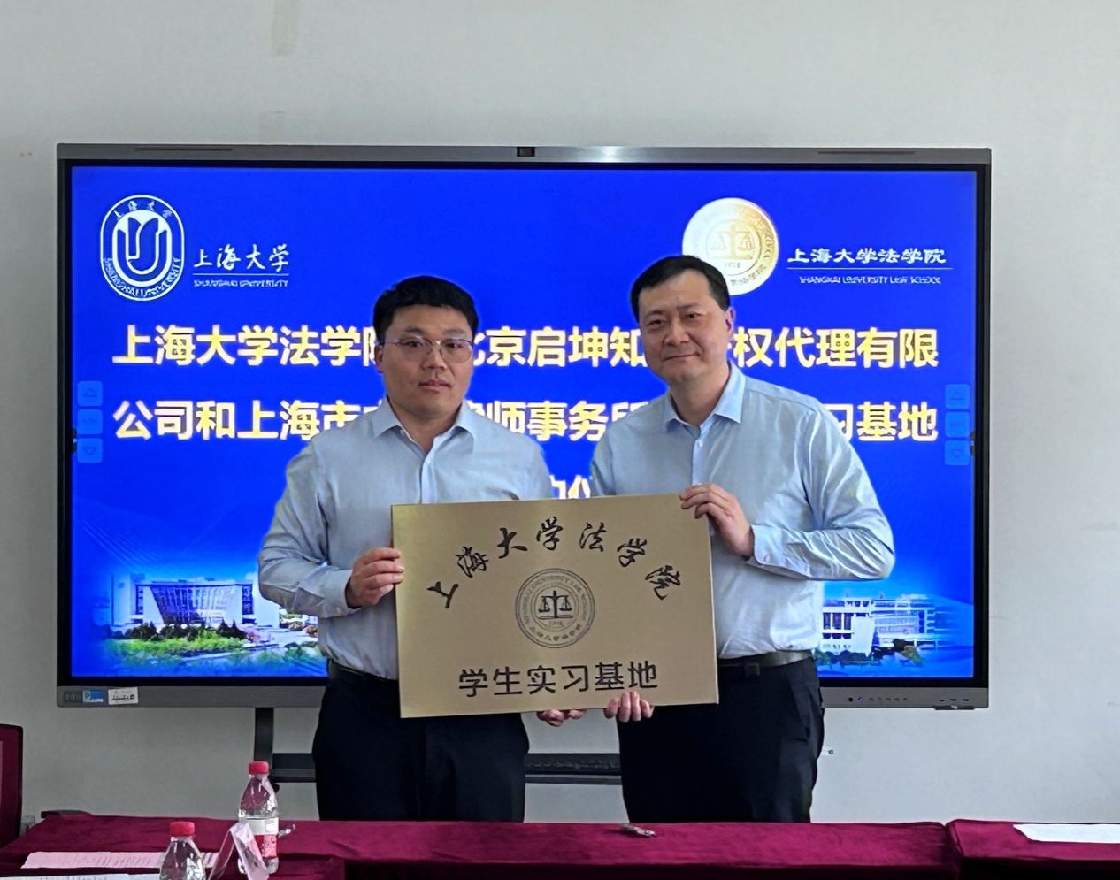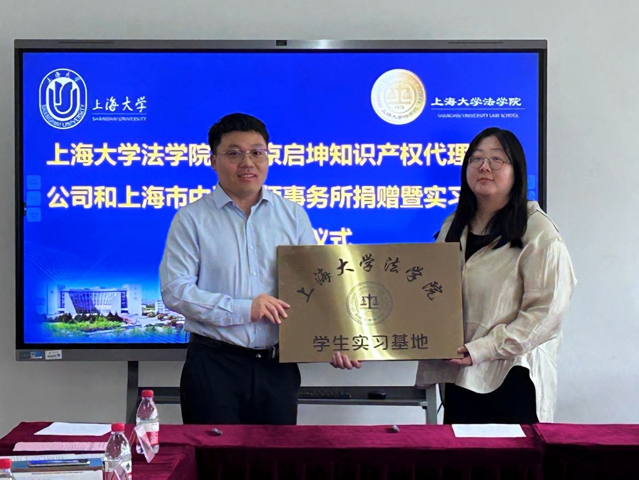 在实习基地授牌仪式中,于伟副书记代表304永利集团向北京启坤知识产权代理有限公司、上海市中浩律师事务授予“304永利集团员工实习基地”牌。