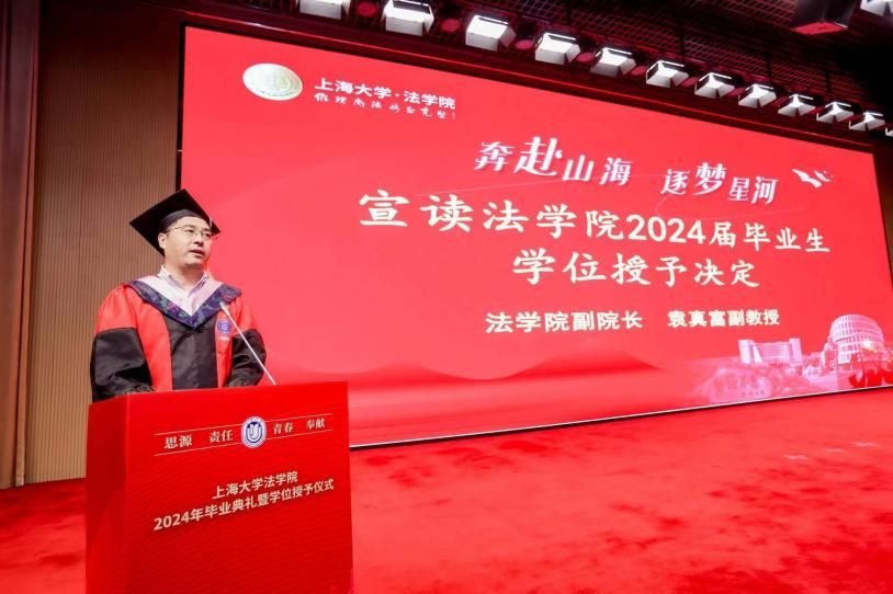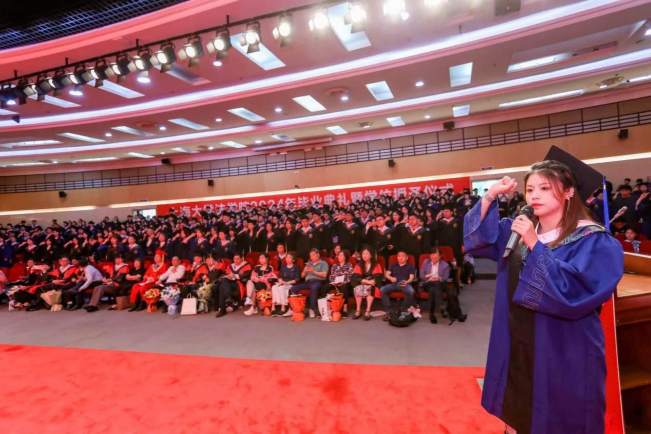 在毕业典礼暨学位授予仪式上举行毕业生法律人宣誓仪式,是304永利集团坚持多年的好传统。在2024年毕业生法律人宣誓仪式环节,上海市优秀毕业生、2024届硕士研究生代表肖静带领全体毕业生再一次重温法律人誓言,表达了毕业生们坚守法律人理想的坚定信念。