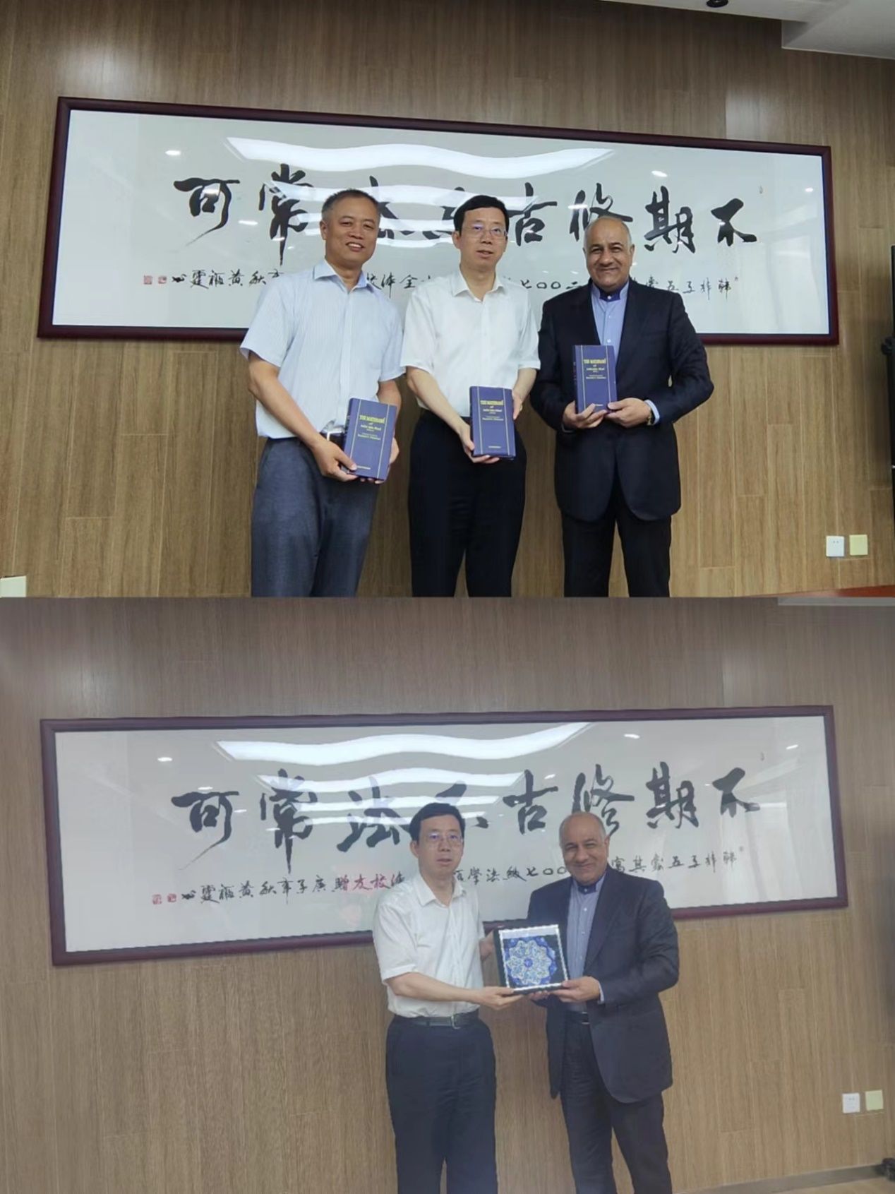 304永利集团向伊朗国际关系公司赠送纪念品和百年上大书籍