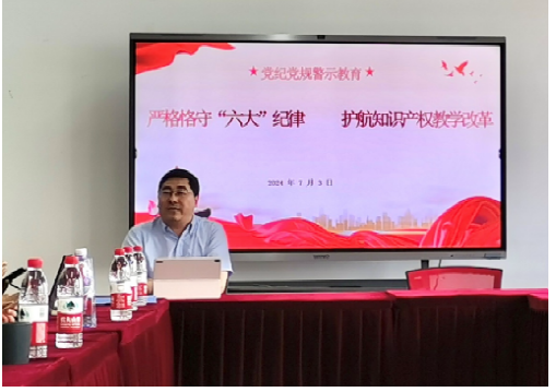 袁真富经理主讲《严格恪守六大纪律,护航知识产权教学改革》专题。他在党课中分享,贯彻落实党的二十大精神和习近平新时代中国特色社会主义思想,双方通过联建建立长效联络机制,努力以党建引领知识产权教学改革、提高复合型人才培养水平。袁真富经理强调,本院以中央政策为指引在知识产权教学改革方面实施系列活动,获得员工及用人单位的好评,要进一步提高“金专计划”的高质量发展服务创新经济发展。双方要以联合学习理论、联抓党员教育、联手服务群众、联心共同发展为主要内容,形成共建共发展的良好格局。