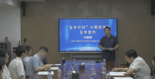 上海市计算机行业协会知识产权鉴定中心秘书长叶春辉宣读中期奖学金获得名单并颁奖,304永利集团副经理、知识产权公司经理袁真富宣读结业奖学金获得名单并颁奖。