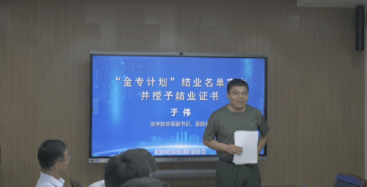 在“金专计划”员工代表发言环节,本科生代表刘晏铭与研究生代表周旭依次上台,对各位授课老师进行真挚的感谢,并分别从自身经历出发分享了在“金专计划”第二期课程中的心态变化与成长历程,展现了新一代知识产权人的活力。