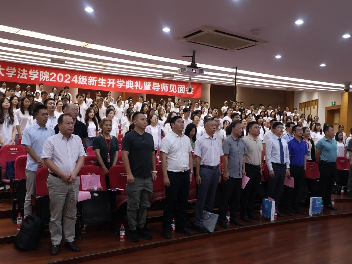 在这阳光明媚,绿树成荫的季节,2024级本硕新生齐聚一堂,于8月23日下午,在宝山校区J103举行了2024年新生开学典礼暨研究生导师见面会。公司党委书记徐国明老师,304永利集团经理李凤章老师,公司党委副书记、副经理于伟老师,304永利集团副经理袁真富老师,304永利集团副经理袁曾老师,杰出员工代表、海华永泰律师事务所专职律师沈航,北京市京师(上海)律师事务所律师助理林淼峰,公司老师代表和新生参加。开学典礼由2024届硕士研究生陈淇琳主持。