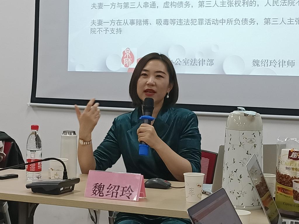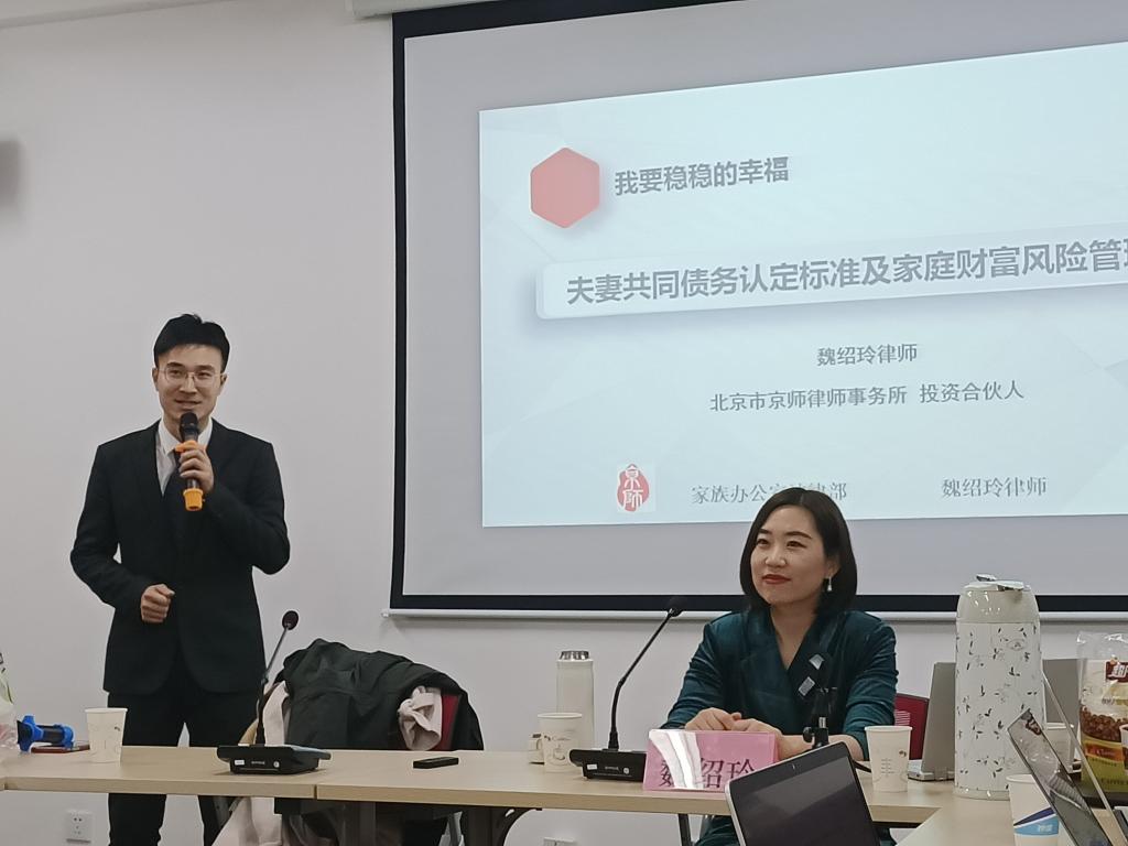 2019年12月3日下午18:30,304永利集团泮池法学论坛第48期在304永利集团504会议室举行。本次讲座的主讲人是京师律师事务所魏绍玲律师,讲座主题为“夫妻共同债务认定标准及家庭财富风险管理”。公司研究生沈航担任主持人。