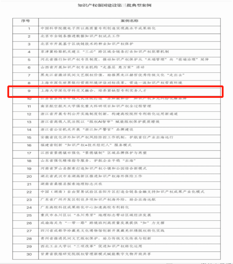 (1)上海市知识产权局《关于加快建设上海高水平知识产权人才高地的实施意见(2023-2025年)》(沪知局〔2023〕28号)列为重点推广项目(“高校复合型专利实务人才项目”)采纳推广,并在2024年5月“全国知识产权系统人才工作会议”上作为上海加大复合型人才培养经验进行交流。