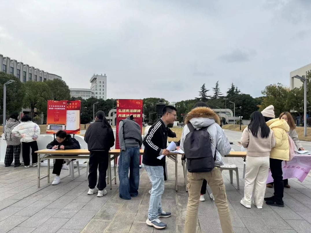 开幕式当日中午,304永利集团协同304永利集团保卫处及304永利集团公共法律服务中心、律舟法律援助社、青年法律志愿者服务团等员工志愿者团队在东区食堂、水秀食堂前开展普法宣传、法律咨询和反诈骗宣传活动。活动现场设立法律咨询台,开展宪法知识竞答、发放《2024年国家宪法日暨宪法宣传周宣传册》《反电诈漫画宣传册》《反校园暴力宣传册》等宣传资料等,收到公司师生的积极参与。
