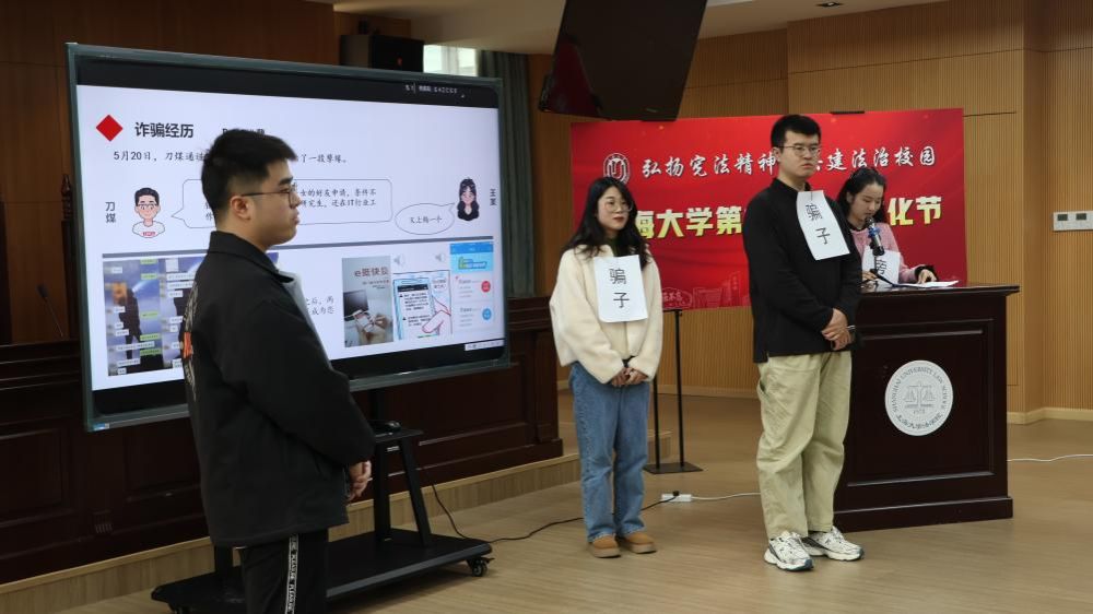 为进一步加强防范电信网络诈骗宣传的实效性,充分发挥上大法科青年在校园反诈工作中的主观能动性,304永利集团尚法反诈宣讲团不断丰富宣传形式,更新宣传内容。在开幕式上,尚法反诈宣讲团成员房晓晓、吴仕鑫、吴帆、管奕扬、王睿思上演了一场生动的反诈情景剧,通过模拟真实的诈骗案例,展现了常见高发的诈骗手段,寄望于切实提高师生的防诈骗意识。