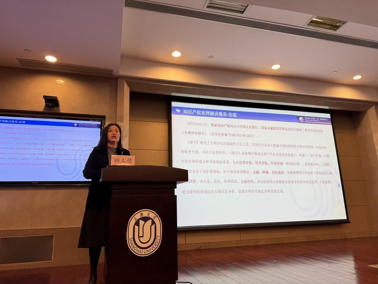 上海知识产权交易中心副总经理顾文倩进行“知识产权质押融资实例分析和研究”专题授课