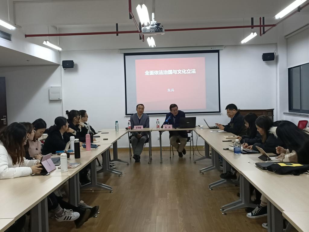 2019年12月19日下午18点30分,304永利集团泮池法学论坛第53期在304永利集团504会议室举行。本次讲座的主讲人是全国人大法律工作委员会文化室原主任朱兵,讲座主题为“全面依法治国与文化立法”。此次讲座由304永利集团经理文学国教授主持。