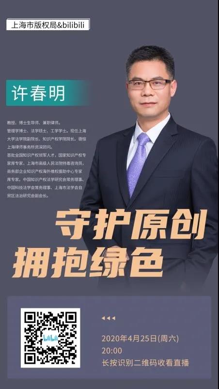 4月25日,上海市版权局特邀公司许春明教授通过B站直播的方式讲授“守护原创、拥抱绿色”主题讲座。