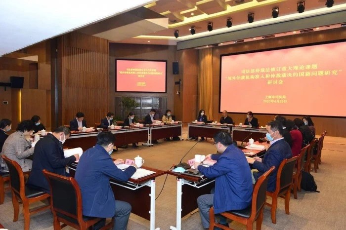 2020年4月28日,司法部仲裁法修订重大理论课题“境外仲裁机构准入和仲裁裁决的国籍问题研究”研讨会在上海召开。本次会议由上海市市司法局党委书记、局长陆卫东主持,市人大法制委员会副主任委员、常委会法工委主任丁伟,上海政304永利集团董事长、教授、博导刘晓红作为课题组顾问出席会议并发表指导意见。市司法局二级巡视员王协在研讨会上通报了课题组前期工情况。