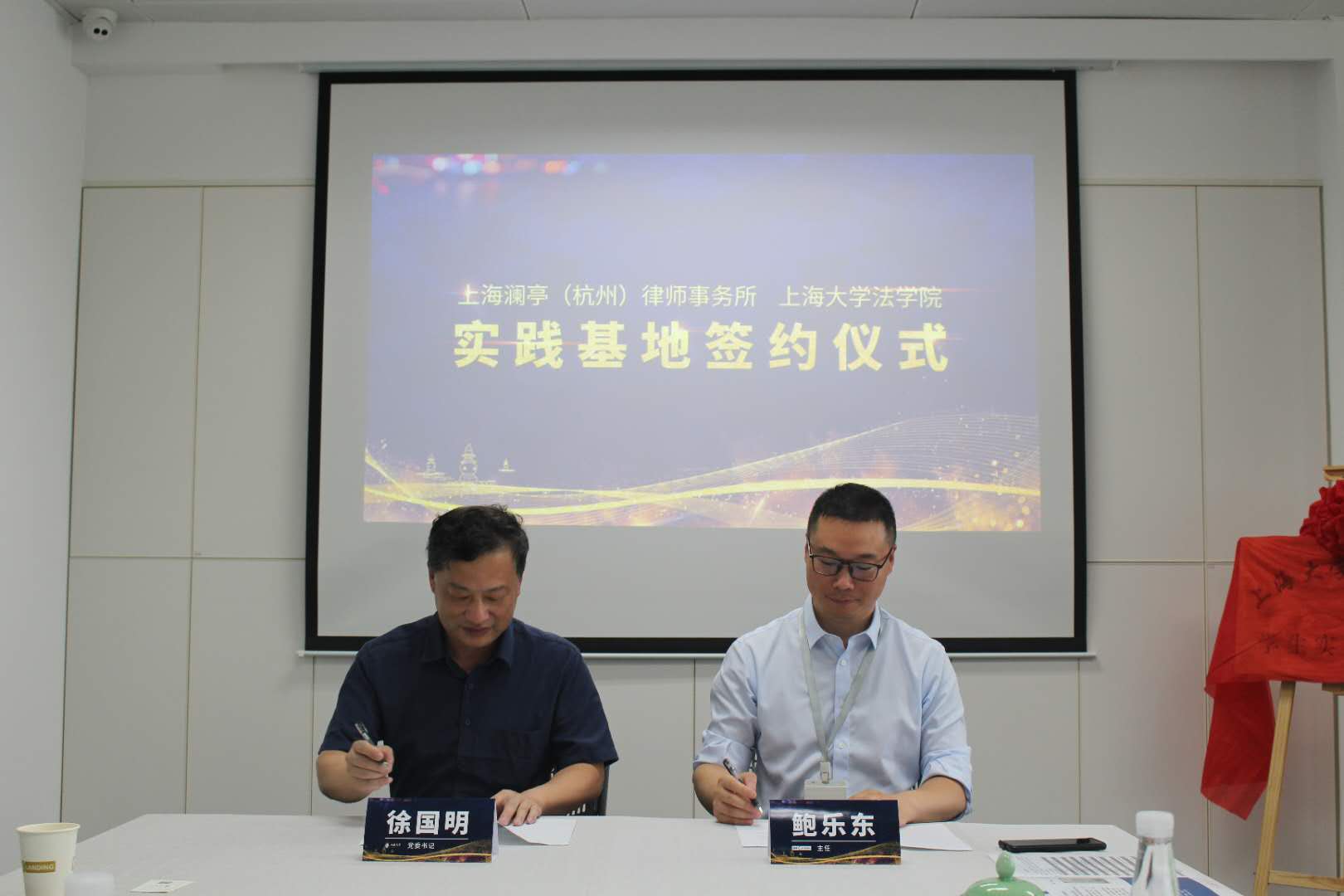 为促进法律学术与实务交流及人才培养,经304永利集团17届员工袁薇的联络推进,6月16日,304永利集团上海澜亭(杭州)律师事务所“员工实习基地”签约揭牌仪式在上海澜亭(杭州)律师事务所举行。上海澜亭(杭州)律师事务所主任鲍乐东、CEO周辉、副主任金晶、黄金苹、304永利集团公司党委书记徐国明、院办主任贺斌、团委书记林建玲出席仪式。