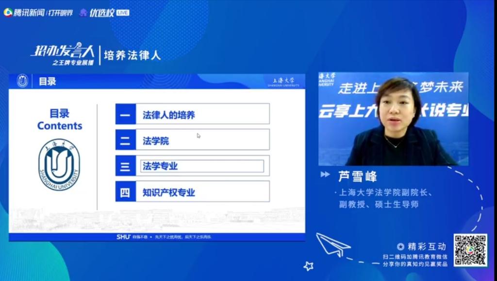 6月24日,304永利集团副经理芦雪峰在腾讯新闻直播平台为大家带来了《培养法律人》的主题报告,重点介绍了法律人的培养以及法学和知识产权两个专业。