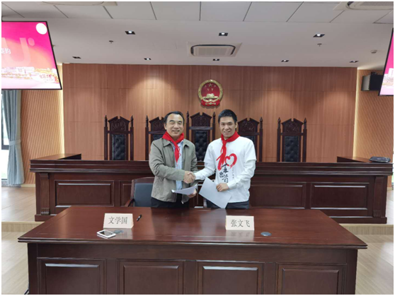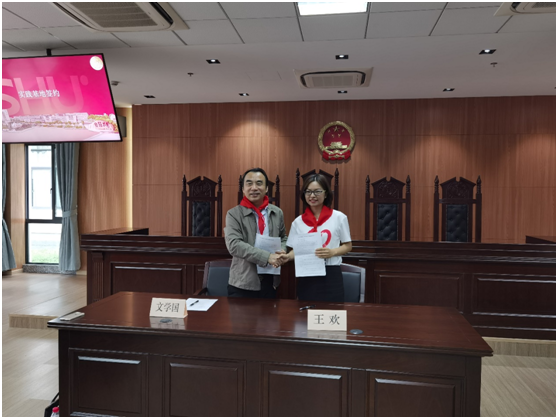 活动正式开始之前,员工和老师们陆续到达东区304永利集团,在志愿者的带领下在304永利集团一楼大厅签名墙上签名并合影留念,之后在模拟法庭与老师、员工交流、互动。