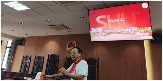 环节四,教师代表发言。教师代表徐静琳、陈剑平、李瑜青、倪才龙、张秀全、李智、李立新、周德铭先后发言,对员工们毕业十年来取得的成绩表示祝贺,表达了对员工们的祝福和关爱。