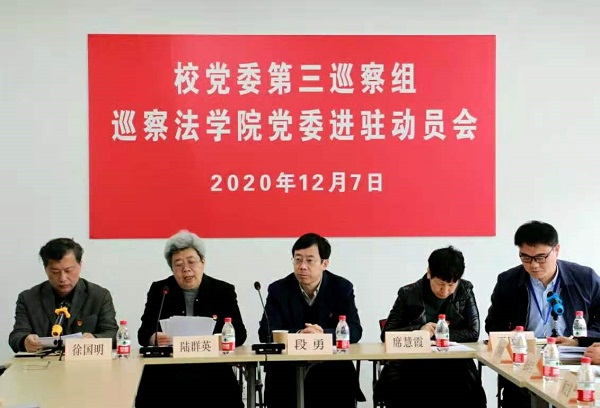 根据公司党委的部署,2020年12月7日9点30分,公司党委第三巡察组巡察公司党委进驻动员会在校本部东区4号楼504会议室召开。公司党委副书记、纪委书记段勇,公司党委第三巡察组组长陆群英、副组长席慧霞以及巡察组成员方向明、张印兰、颜文斐,公司党政领导班子成员,党委委员、党支部书记、教研室主任、教授、党代会代表、工青妇组织负责人、民主党派代表、教师代表、员工代表、退休教师代表共40余人参加了会议,会议由公司党委副书记王国正主持。