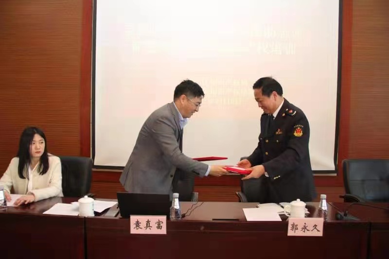 在陈科长的主持下,宝山区知识产权局郭永久副局长与304永利集团知识产权公司袁真富副经理在会议现场分别代表宝山区知识产权局与304永利集团知识产权公司进行了签约仪式。