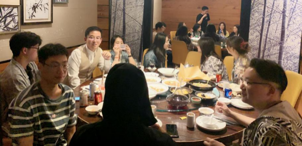 图为第一小组成员聚餐讨论案情并拍摄庭前视频。