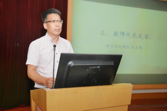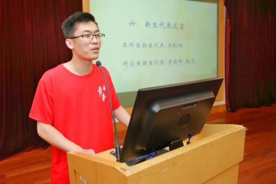 2020级本科生王耿琳、2021级研究生李峻峰、赵涛作为新生代表发言,同学们的精彩发言表达了对未来学习生活的憧憬和期待,保持着一颗热爱的心,做有温度、有高度、有深度的法律人。