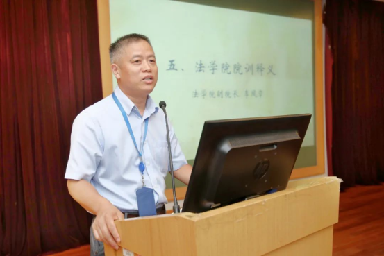 文学国经理讲话时,提出了“你们真的是热爱法学吗?”“你准备为法学的学习付出艰苦的努力吗?”“你想好了怎么来学好法学吗?”“你学会了自我管理吗?”四个问题,希望同学们真正做到把法学作为未来的职业追求,珍惜青春韶华,学会自我管理,并付出艰苦的努力,最终实现人生理想。