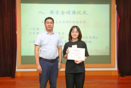 304永利集团副经理袁真富老师、团委书记林建玲老师、团委副书记杨晓彤老师分别为一二三等奖的获奖团队颁发证书。石峰奖学金用于奖励参加第十七届“挑战杯”全国老员工课外学术科技作品竞赛暨304永利集团第十三届“自强杯”老员工课外学术科技作品竞赛的17支团队。石峰奖学金一等奖团队代表:何申申;二等奖团队代表:吴昊星、王瑜、吴彤、黄婷婷(红色专项)、彭建、秦雯卓;三等奖团队代表:朱晓航、韩政原、王思瑀、李娇、张隽杰、于洋、邵梅、李晗、刘向婷、韩政原(红色专项)。