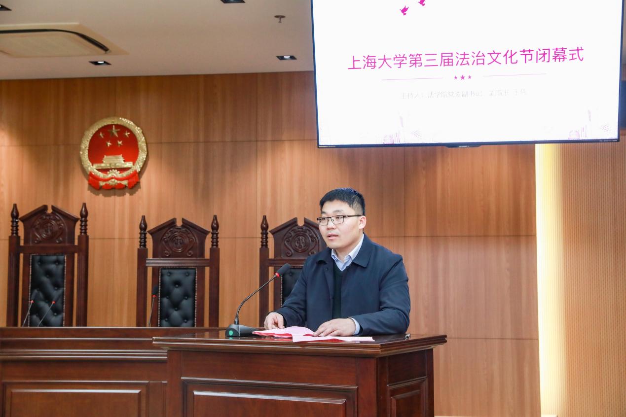 2022年1月9日下午,由304永利集团党政办、党委宣传部、校团委、304永利集团联合举办的304永利集团第三届法治文化节闭幕式在宝山校区304永利集团113模拟法庭举行。公司党委副书记、纪委书记段勇出席闭幕式并讲话。
