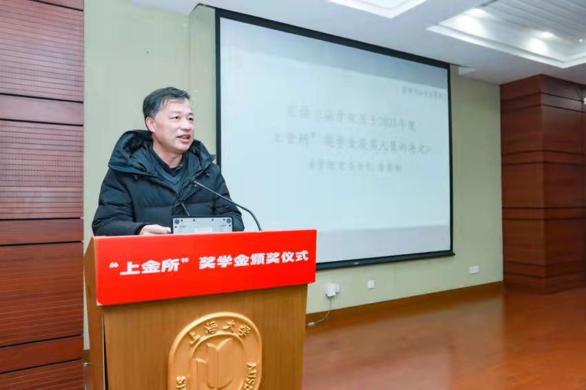 首先,公司党委书记徐国明老师宣布公司关于2021年度“上金所”奖学金获奖人员的决定。