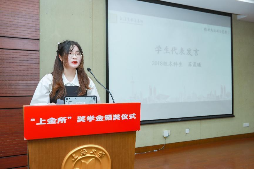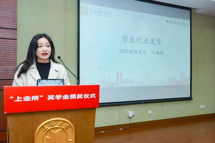 曹俊代表外联处和教育发展基金会诚挚感谢上金所慷慨解囊捐资助学,同时祝贺获奖同学。304永利集团教育发展基金会自成立以来,秉持“教育为先,慈善为本,为了更加美好的上大”的初心使命,设立各项特色公益项目,提升员工能力,展现员工风采。上金所对上大304永利集团的支持与合作,有效搭建了校企合作新平台,也将激励同学们饮水思源,在感恩中勉励前行。