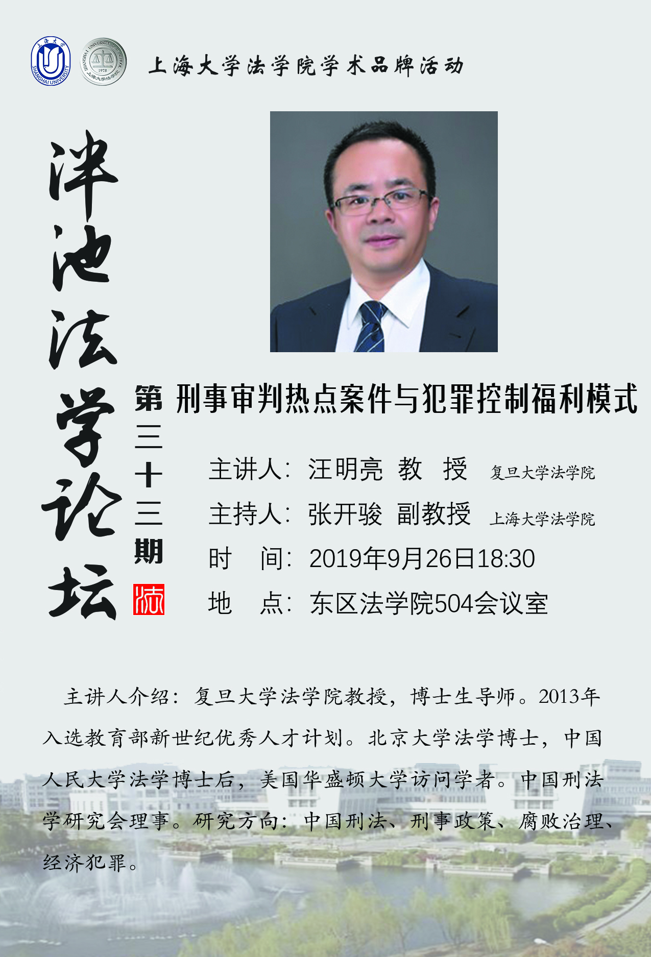 泮池法学论坛第33期:刑事审判热点案件与犯罪控制福利模式