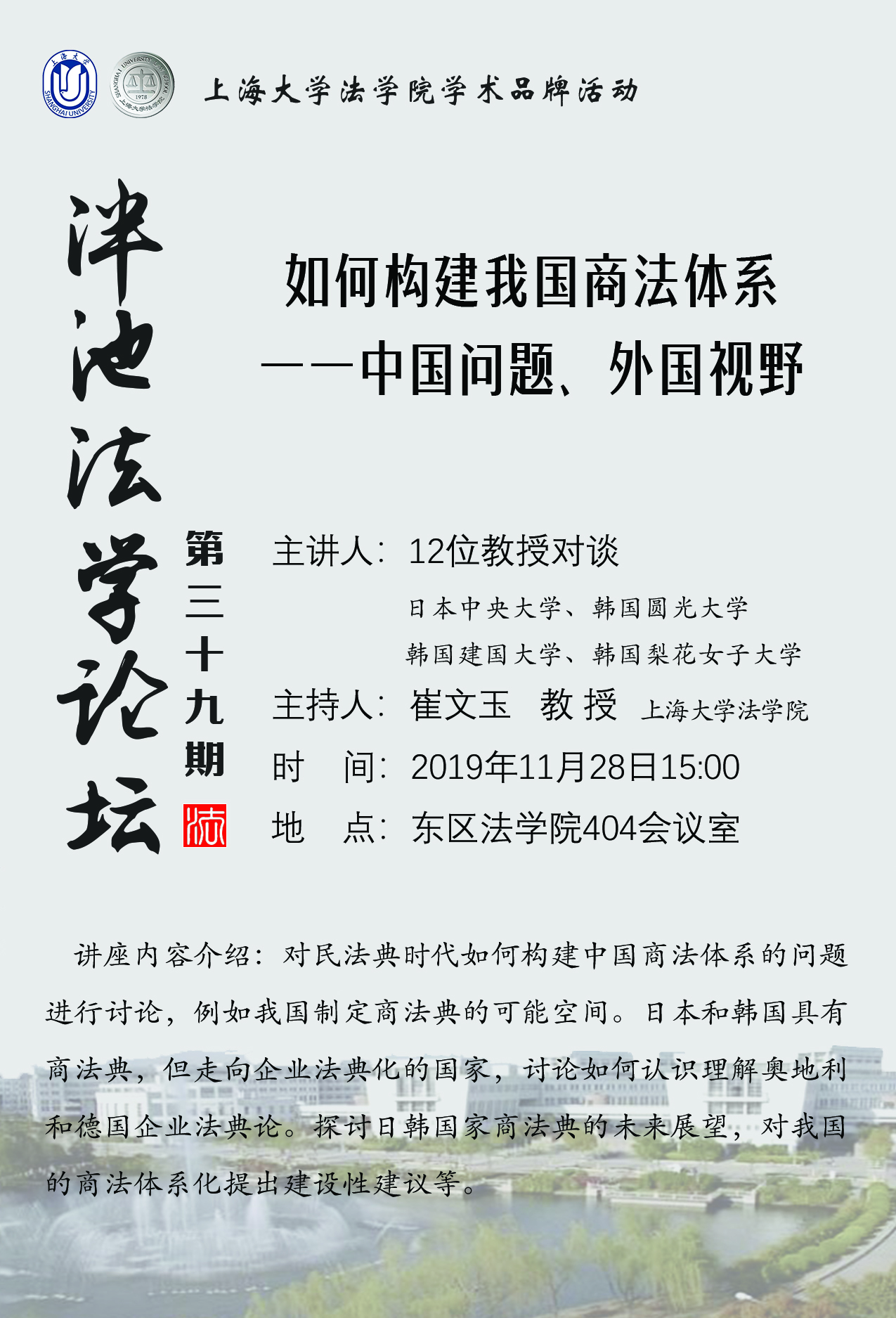 泮池法学论坛第39期预告:如何构建我国商法体系——中国问题、外国视野