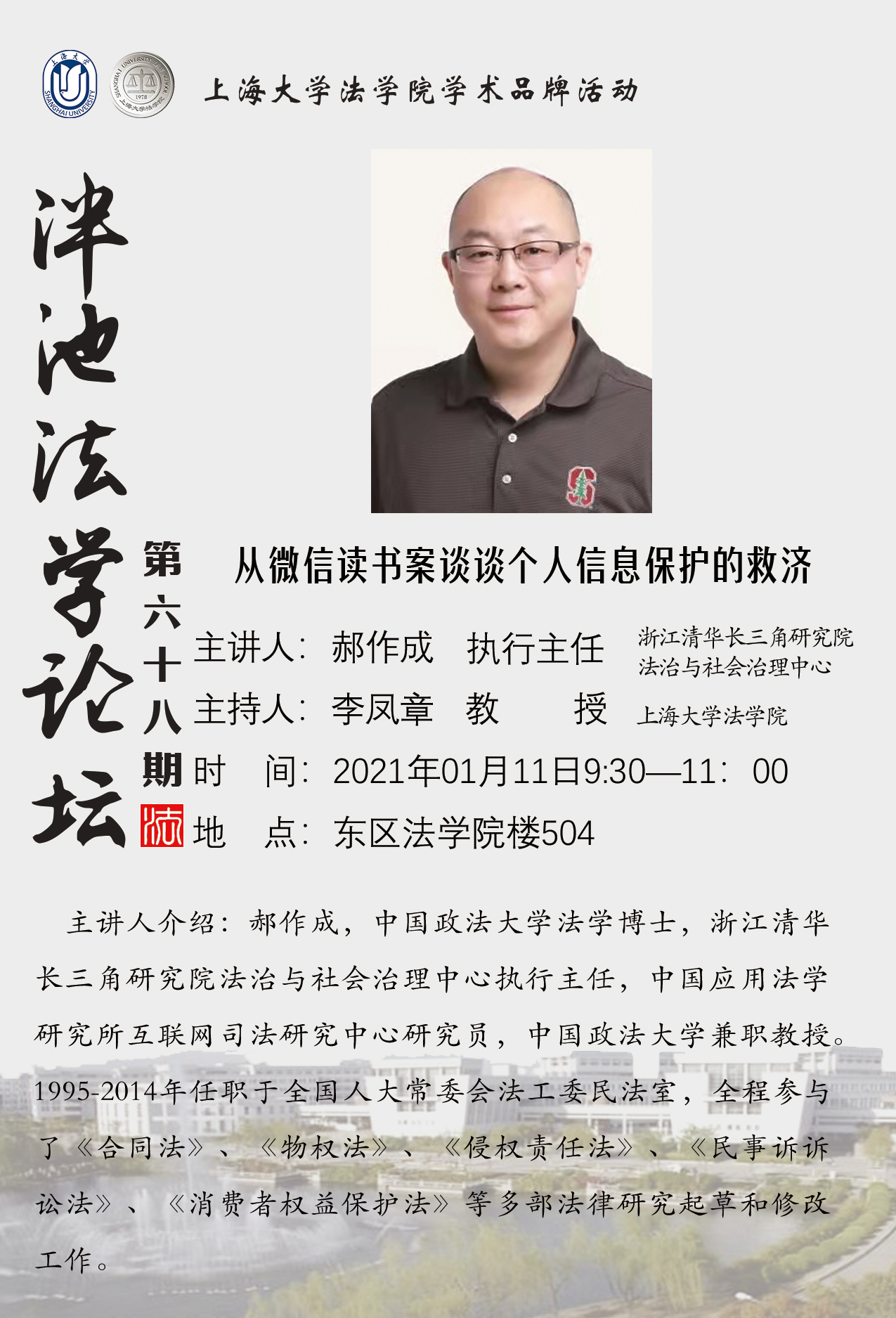 泮池法学论坛第68期预告:从微信读书案谈谈个人信息保护的救济