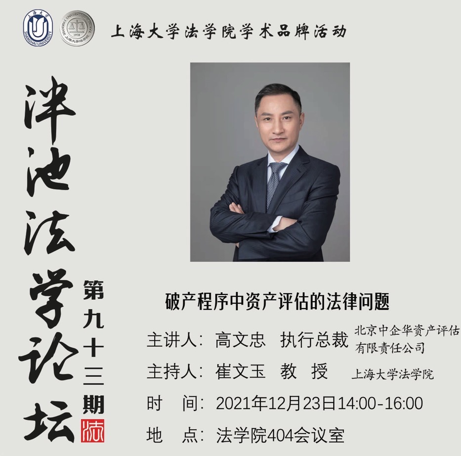 泮池法学论坛第93期预告:破产程序中资产评估的法律问题